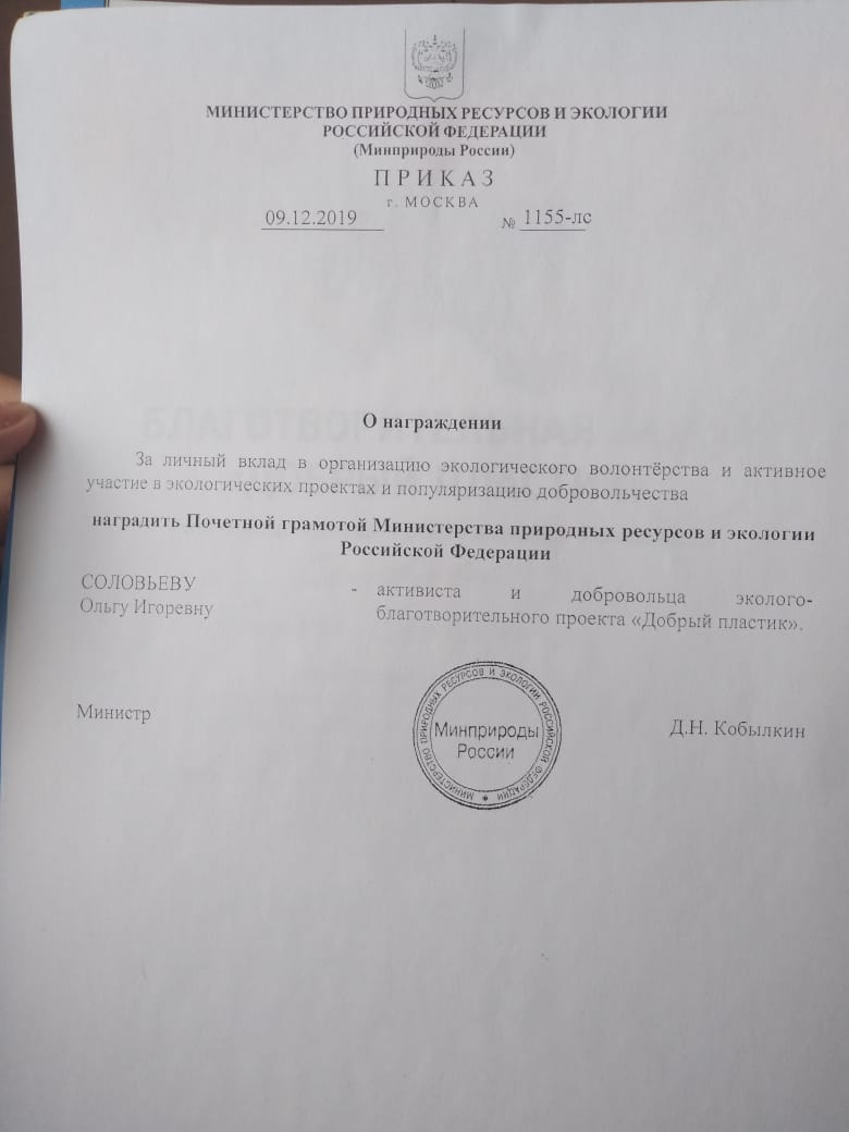 Экология – это для всех. В экопроекте «Добрый пластик» (Далее – Проект) от БФ «География Добра» (далее – Фонд) самыми активными и предприимчивыми стали экобабушки. Первопроходцем и серебряным волонтером Фонда стала пенсионерка из г. Костромы - Соловьева Ольга Игоревна, 64 года. Вначале она просто помогала внучке собирать вторсырье на акцию выходного дня «Пластик в обмен на жизнь» (далее – Акция), которая проходила в ее школе. После окончания учебного года, сборы в школах прекратились. А вот вдохновение быть полезной и помогать детям стало у Ольги Игоревны только сильнее. В летние каникулы она организовала сбор пластиковых крышечек в соседнем магазине и стала копить бутылки к новому учебному году. В декабре 2019 года Соловьева Ольга Игоревна получила благодарственное письмо, одобрение Министра природных ресурсов и экологии Российской Федерации Кобылкина Д. Н. и поддержку в дальнейшей реализации Проекта. Она организовала установку 3-х контейнеров в своем районе (2 двора, 1 магазин). В 2020 году она выиграла Всероссийский конкурс «Добровольцы России – 2020» и получила субсидию на установку 30 контейнеров для РСО в г. Кострома в рамках Проекта. Ежедневно она прогуливается по району, смотрит, чтобы нигде не валялся мусор – всегда с собой 2 пакета: для мусора и для вторсырья. А также вместе с детьми из района собирает пластиковые крышечки и собрала уже 10 000 штук.